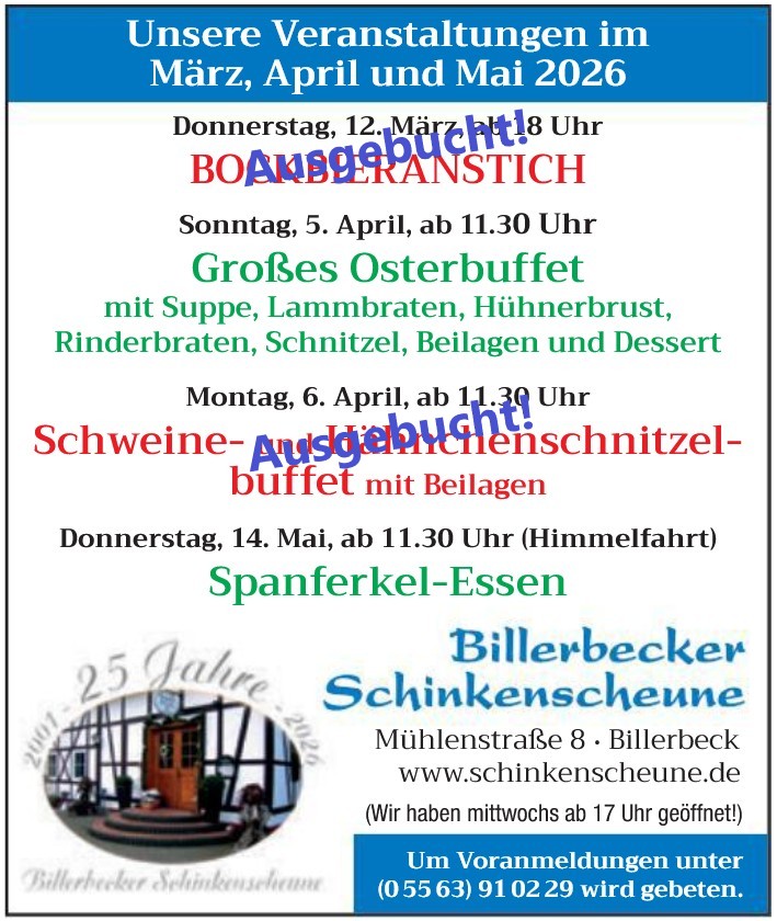 Ihre Schinkenscheune in Billerbeck Tel. 05563 - 910229