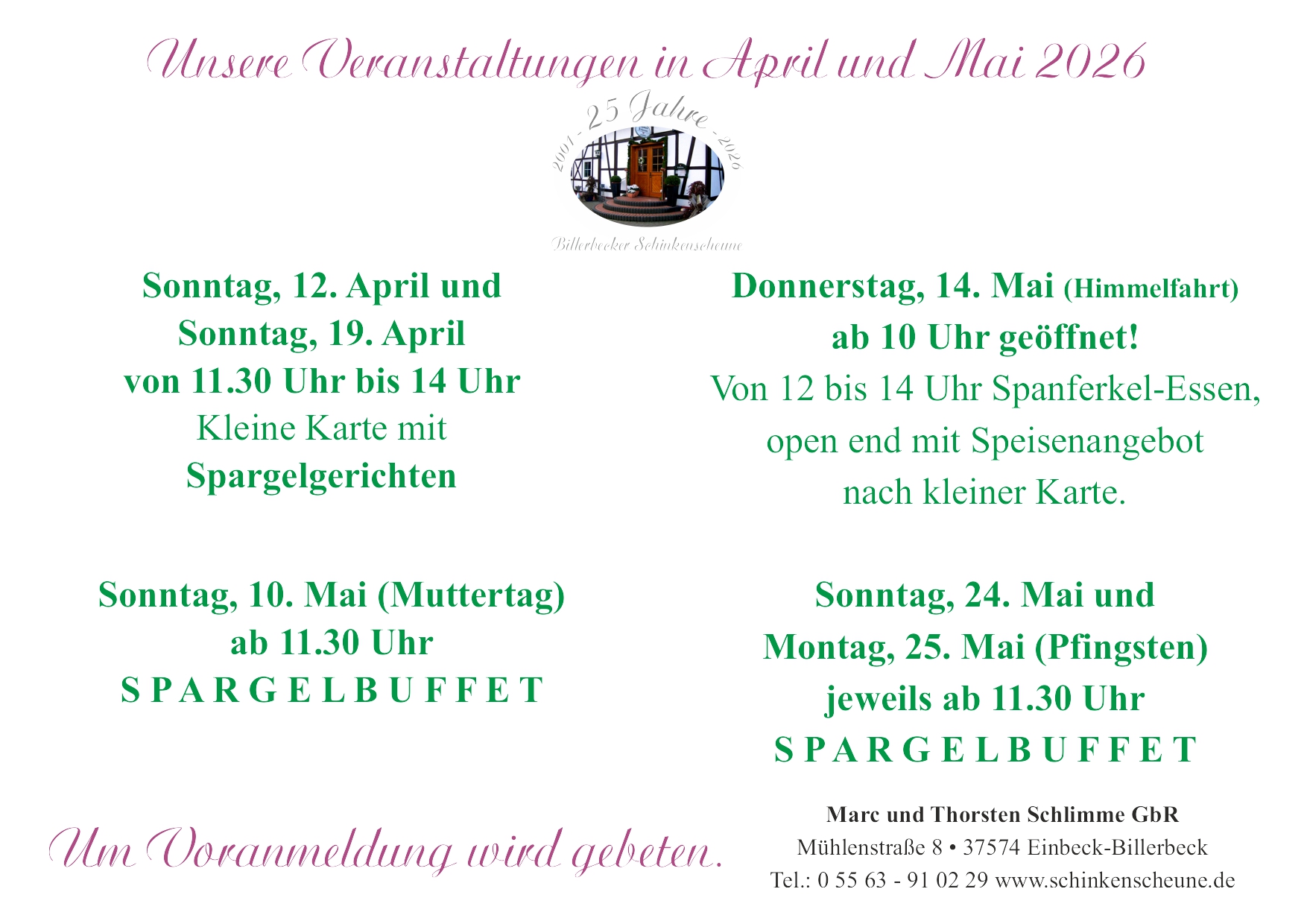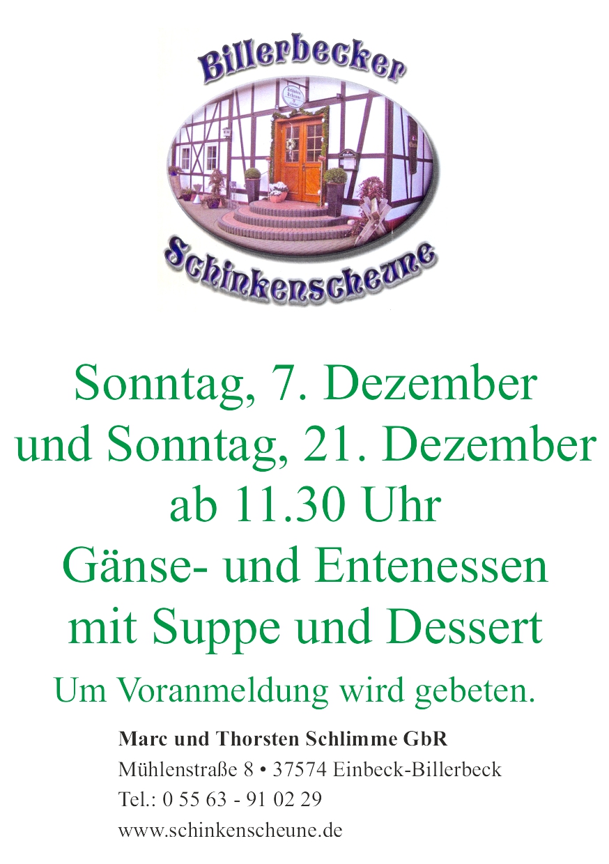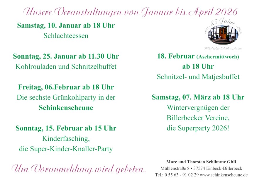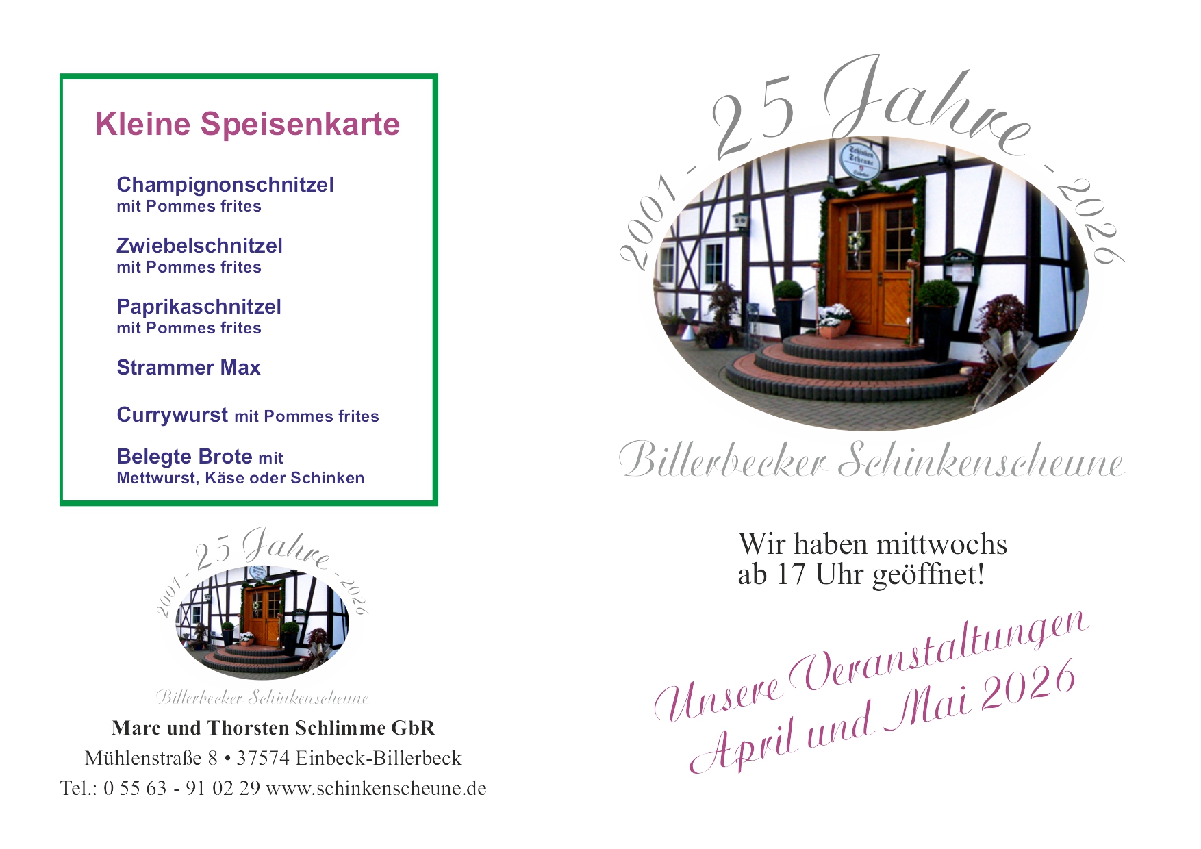 Ihre Schinkenscheune in Billerbeck Tel. 05563 - 910229