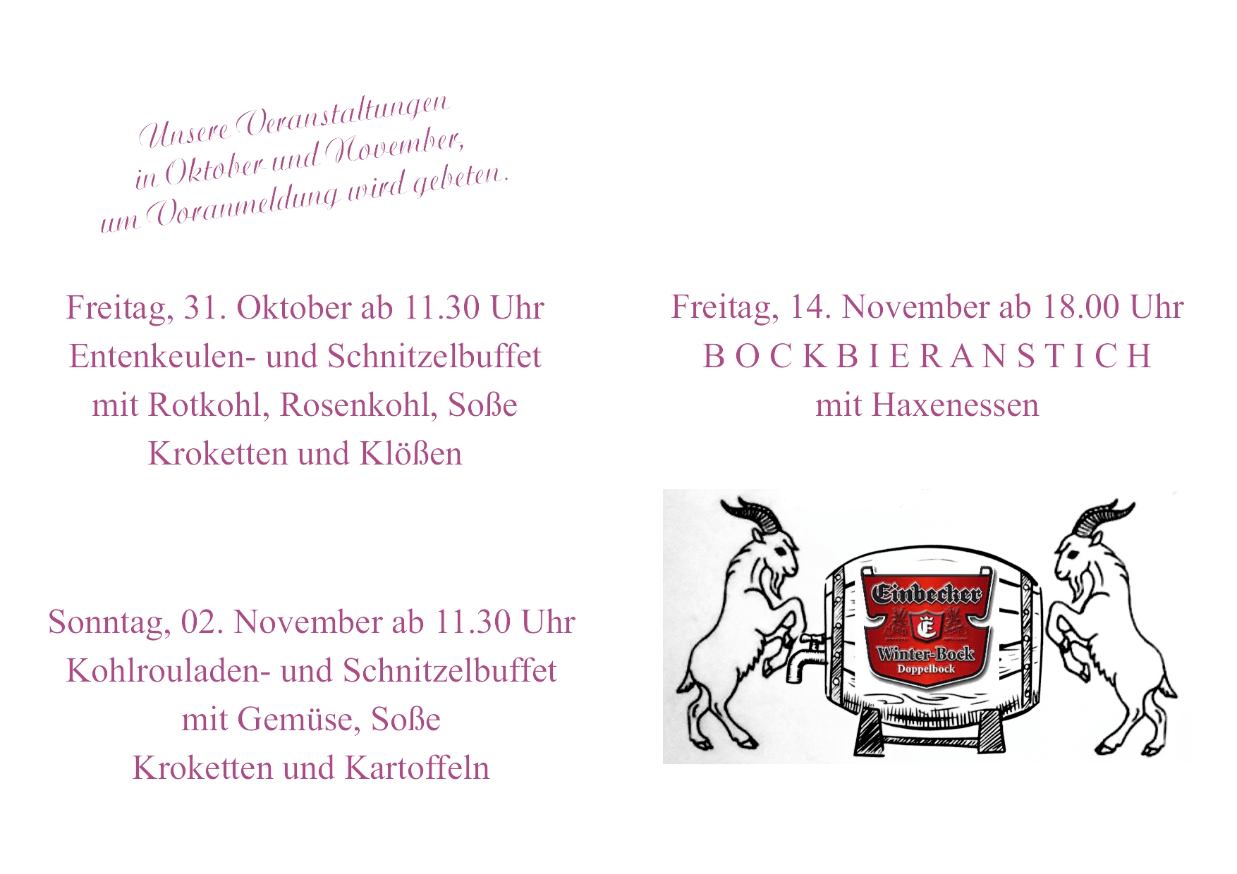 Zu allen Veranstaltungen wird um Voranmeldung gebeten